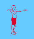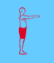 corps. Les paumes des mains sont jointes et les pouces pointent